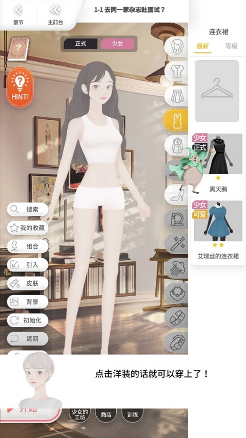 1、游戏开场是沉浸式剧情,会细致讲解角色以及工作的方向。剧情结束后,依照引导完成前期的换装教学。