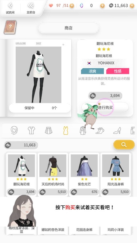6、在游戏中,玩家能够在游戏商店里,选购各类服饰,并依据剧情所提供的场景来进行服装搭配,具体情形可参照图中所示。