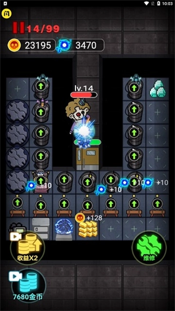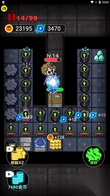 2. 在战斗进行期间,玩家要一步步积攒金币与电气,这些资源可用来构建各类防御装置,像能量护罩、笤帚炮塔、老旧游戏机等等,每一种道具都具备不一样的功能。