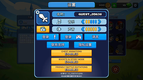 2、进入游戏后,我们可以进行声音、音乐、语言等相关的设置,