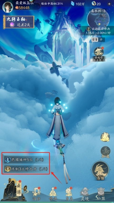 2. 达成主线任务,获取道具并提升修为。