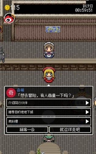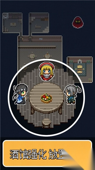 在酒馆中,点击头上带有省略号的勇者,可以安排他们参与冒险。你可以为他们选择目的地,同时配备可售出的道具,为旅途做好准备。