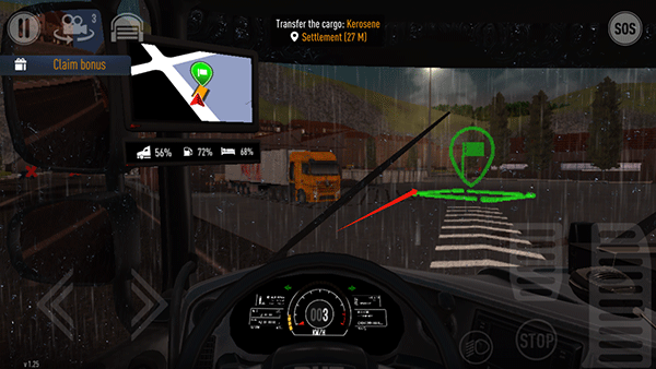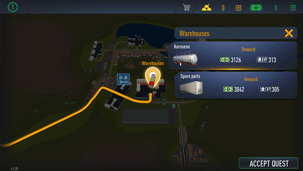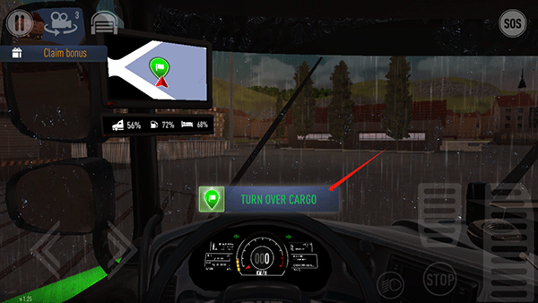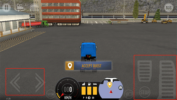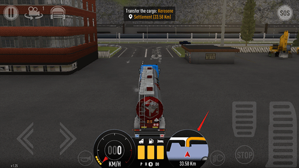 1、在游戏里,玩家可通过左右按键来操控卡车的行驶方向,右边设有倒车与前进按钮。在开始游戏之前,务必先点击中间的地位图标以开启街区任务。