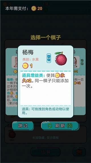 4、杨梅,可永久性增加两个金币,同一个棋子只能加一次。