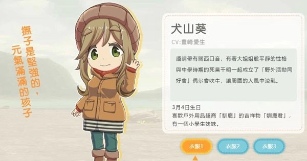 动画中的主要角色均以3D形式再现,玩家可以自由选择与谁露营同行,感受少女们的悠闲野营生活。