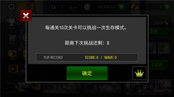 5、开启生存模式,在这种模式中,你需要使用所有可用的武器进行射击,直到时间结束。