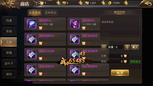 其中论武商店需要参加论武竞技场才能获得论武币,主要兑换灵宠技能书;