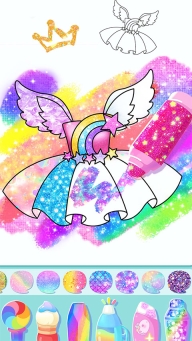 1. 玩家能够解锁各式各样丰富多彩的颜料与亮粉材料,用以绘制出最为美丽耀眼的公主裙。