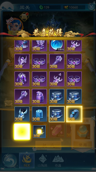 1、游戏在线或离线挂机都可以持续获得角色经验,具体方法为点击左侧「闯关」入口,再点击「收益」,即可收取离线经验值。