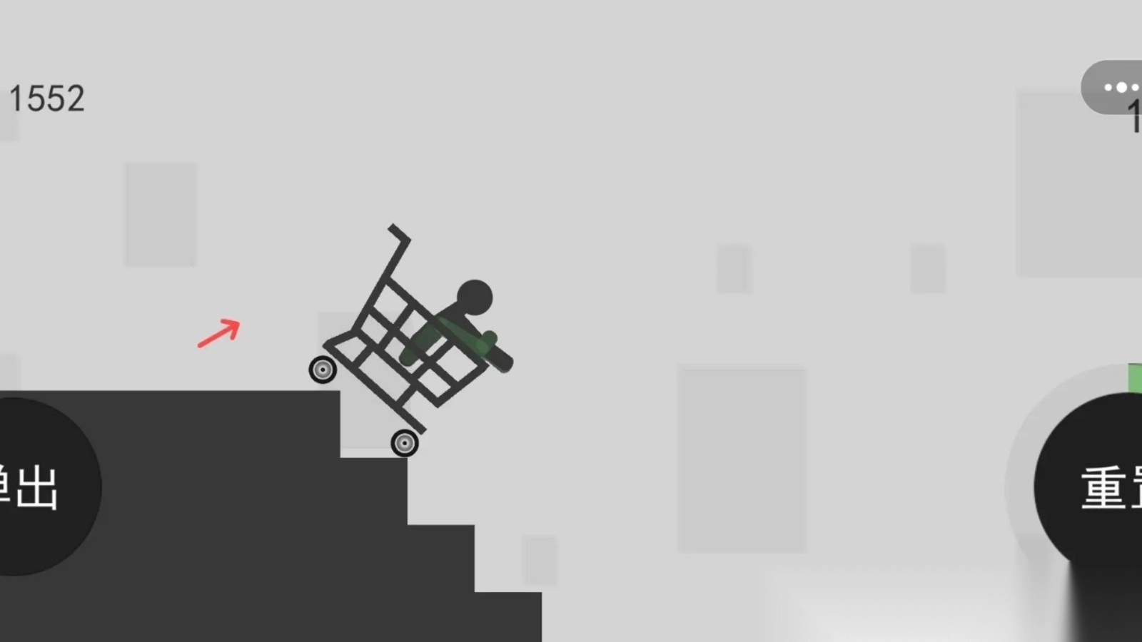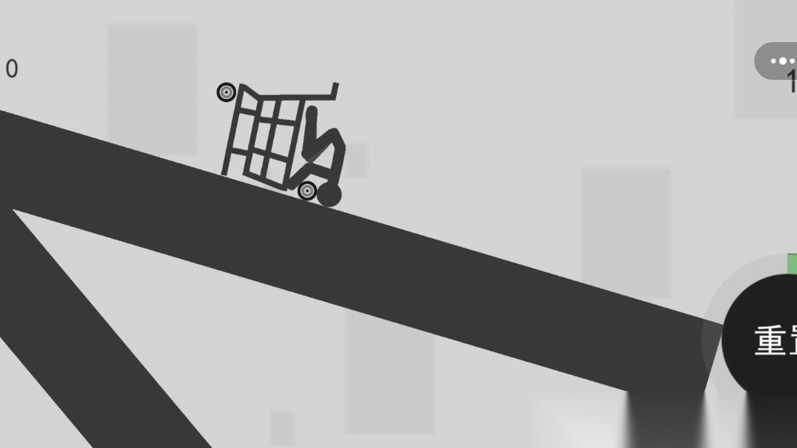 1. 控制购物车,使火柴人顺着台阶向下滑行,留意【购物车倾斜角度】,维持平衡以通过障碍。