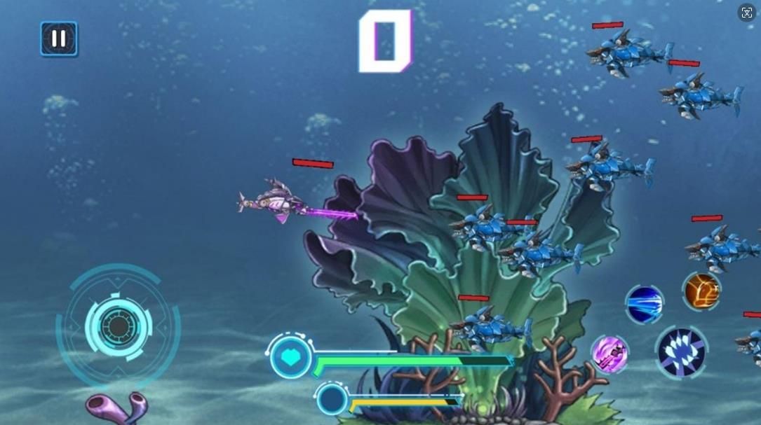1、控制着鲨鱼在海底自由的移动,先从弱小的生物开始吞噬。