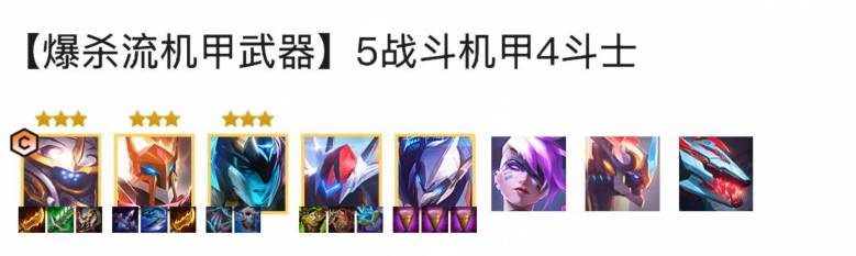1.首先第一套阵容推荐:武器大师,德莱文,瑟庄妮,蕾欧娜,瑟提,蔚,猴子,鳄鱼,组成羁绊为为5机甲4斗士。