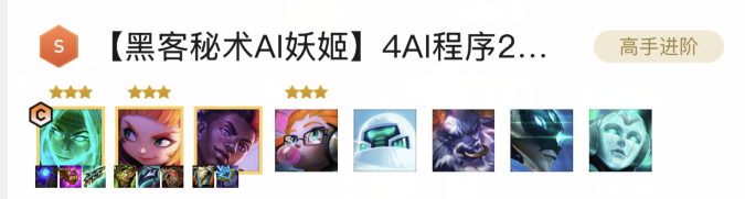 4.第二套阵容推荐:乐芙兰,安妮,艾克,佐伊,机器人,牛头,卡蜜儿,索拉卡,组成4AI程序2秘术2黑客。
