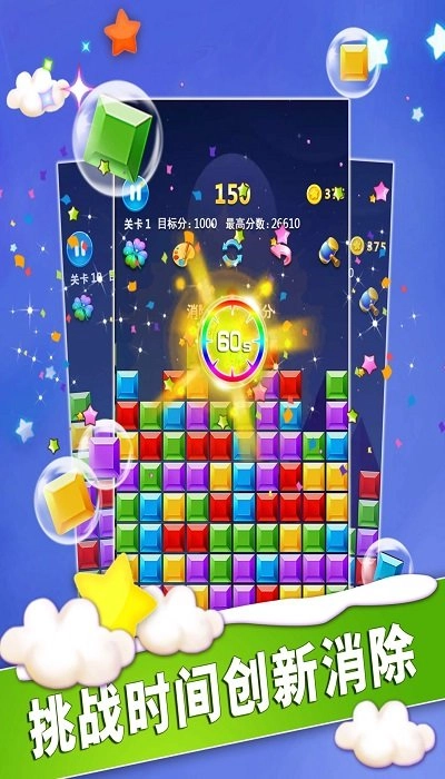 1玩家只需用手指滑动连接相同颜色的五角星,就能触发消除效果并得分。