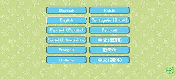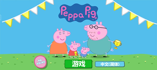 1. 开启小猪佩奇运动会中文版,选取“简体中文”,点击右下角的勾。