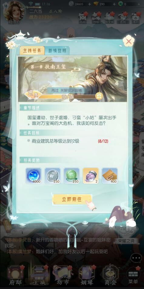 提升身份可解锁珍稀道具,主线任务亦设有身份晋级要求。务必加入高级商会,挂机获取应试凭证,以备后续身份晋级之需。