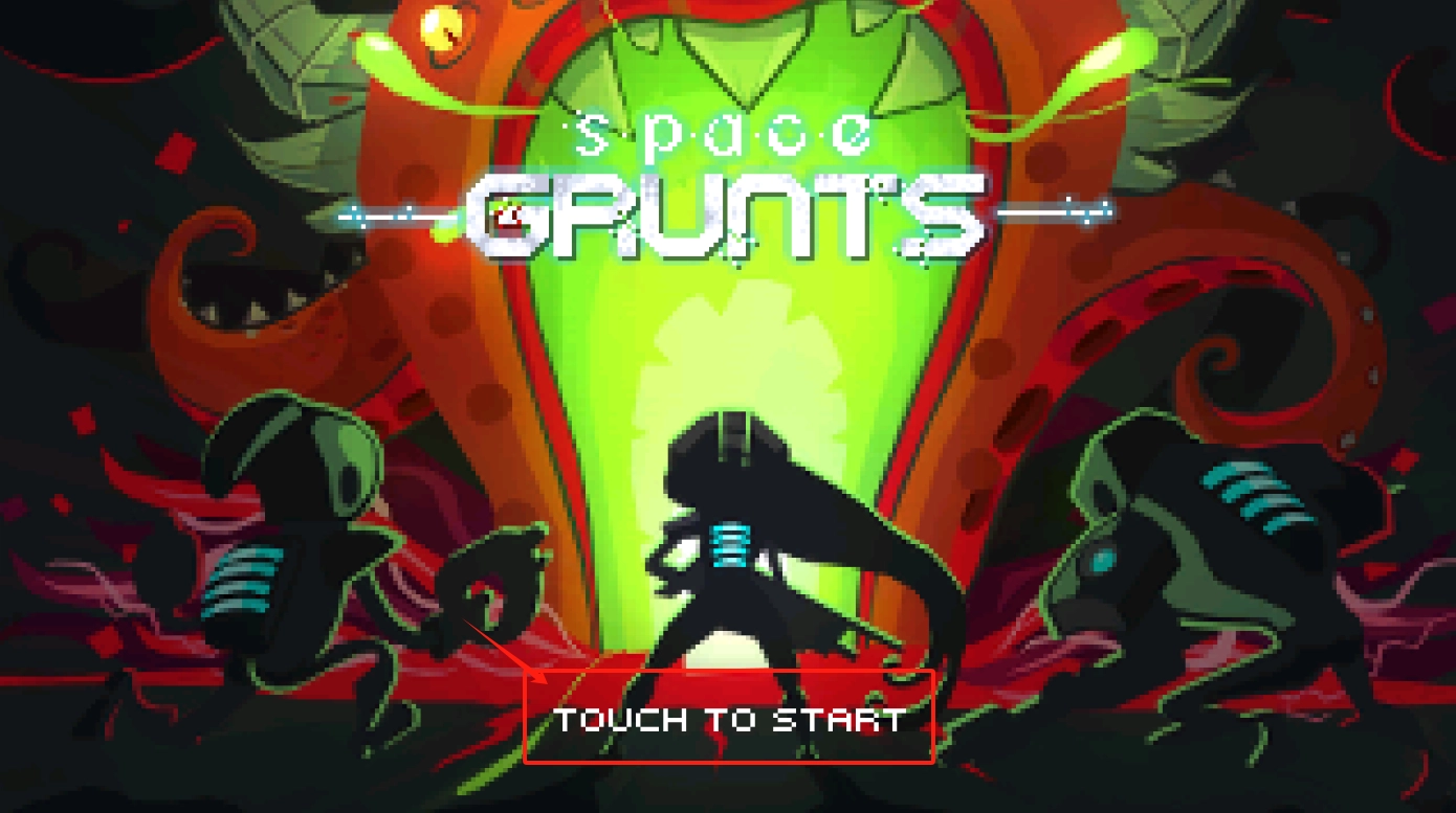 1. 点击屏幕中间的“TOUCH TO START”即可开启游戏。画面左右两侧的角色可供玩家选择,游戏背景充满科幻感。