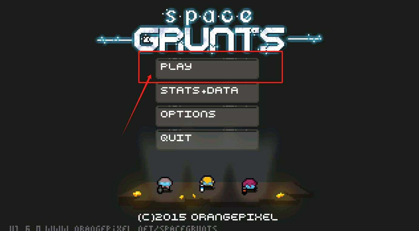 2、选择第一个“PLAY”即可开启游戏,其余选项可用于查看数据或进行设置,页面最下方展示的是制作组信息。