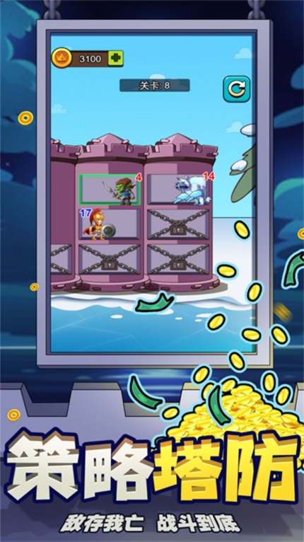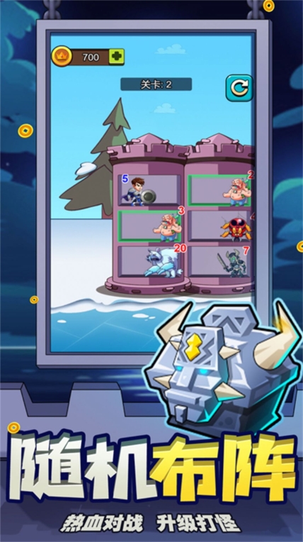 闯关爬塔升级战游戏属于卡牌风格的策略闯关类游戏。在每一关的挑战中,玩家都会遭遇诸多别具一格的策略搭配形式。玩家将化身为勇敢无畏的冒险者,开启冒险征程,去攻克各类关卡、迎战强大的敌人,持续增强自身实力,进而解锁更为丰富的游戏内容。