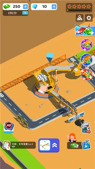 2、您可以购买各种先进的采矿设备,好的生产效率可以让你赚更多金币,有利于公司发展,可以解锁不同的玩法模式。