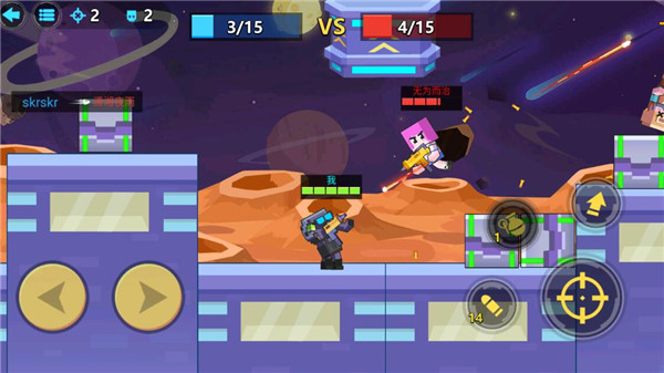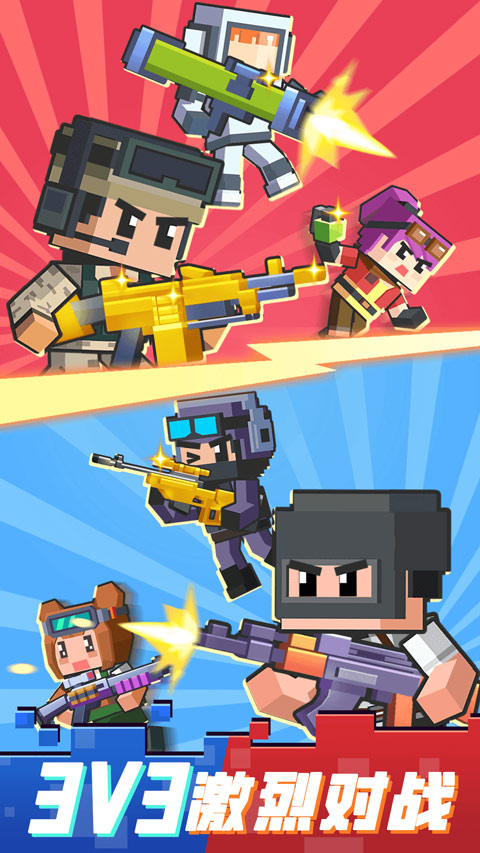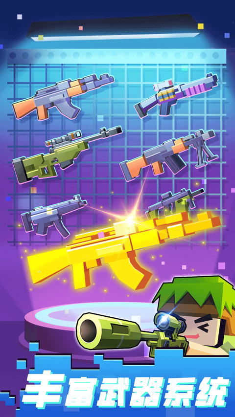 游戏中拥有海量武器可以选择,包括:AK、转管机枪、狙击枪、像素枪、冲锋枪、手枪等等,可以让玩家尽情的体验到射击游戏的快乐。同时该游戏还提供了了不同的模式玩法可以游玩,有竞技模式和娱乐模式,前者更加侧重猎杀,挑战性更大;后者则更多的是娱乐,比较休闲和轻松,这两者可以很好的满足玩家们的不同玩法需求。