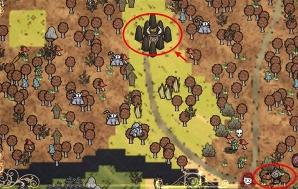 3:借助触手群之类的生物协助击杀。别让猪人和牛群帮忙战斗,不然两下就会全军覆没。可以把目标引到附近森林,其震地板攻击能砍倒周围树木,很容易引出树人守卫,如此之后就能轻松获取木头和战利品了。