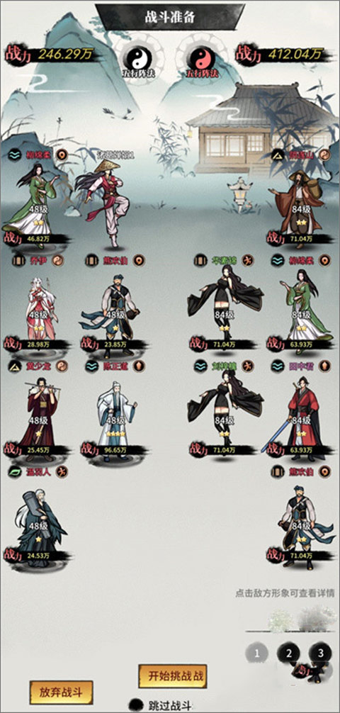 12、战斗布阵查看敌我双方侠客详情时,增加展示等级星级等更多信息;