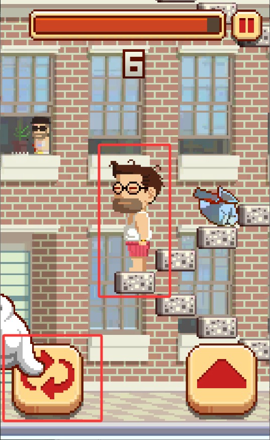 2、点击屏幕让角色向上攀爬,同时要避开障碍物和陷阱,爬得越高得分就越多。手指操作时要灵活并跟随节奏点击。