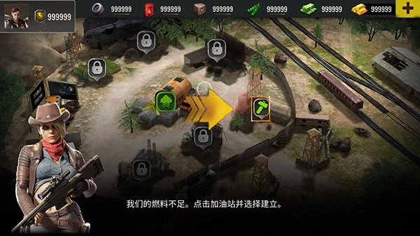4、通关后,我们来到基地,可以看到资源都是无限的,放心使用,接下来按教程点击箭头所示的,建立加油站。