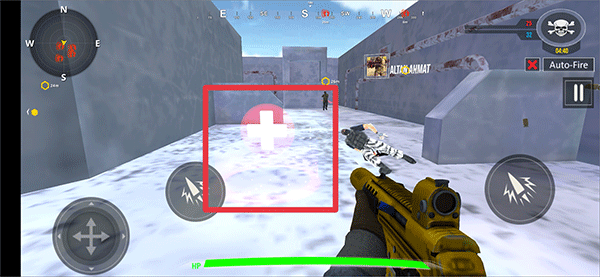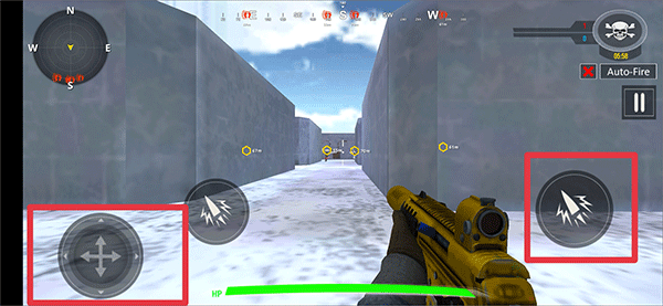 2. 进入游戏后,通过左下角的轮盘来操控角色移动,右侧则是射击按钮。
