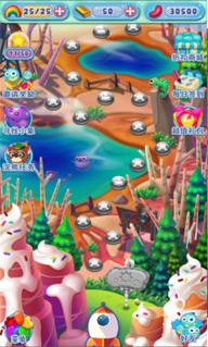 糖果小怪兽会吃掉你的糖果,这个很是让人讨厌。在它旁边消除1次就可以将其打晕。趁它眩晕时再消除1次就可以将它彻底赶跑了。要注意假如打晕后没有立即进行第2次消除,小怪兽就会醒来跑掉的哦。