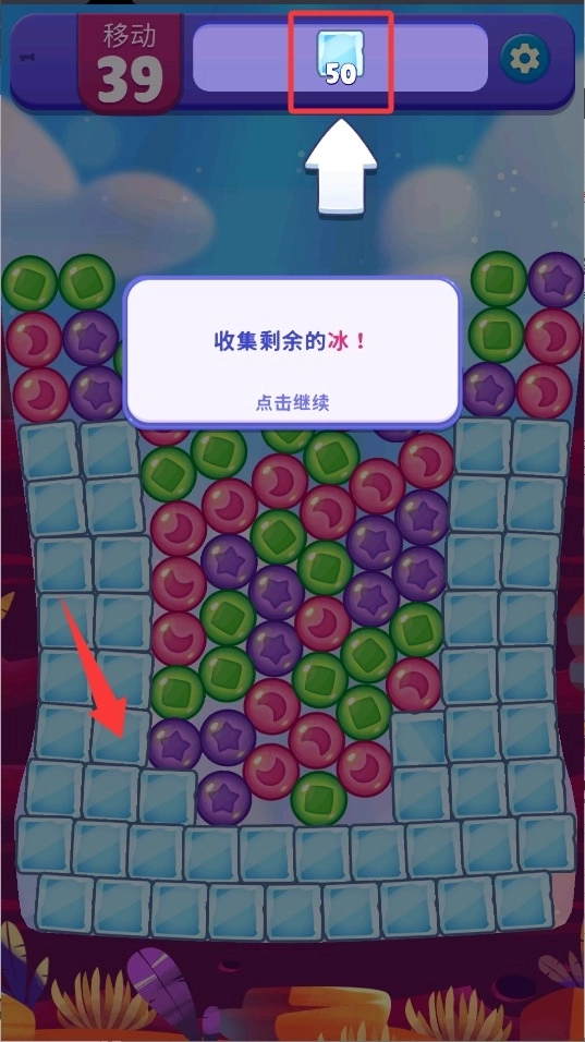 2、重点清除关卡中剩余的冰块障碍,这些冰块会阻挡目标,全部清理干净才能顺利通关进入下一关。