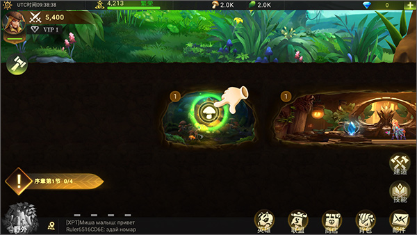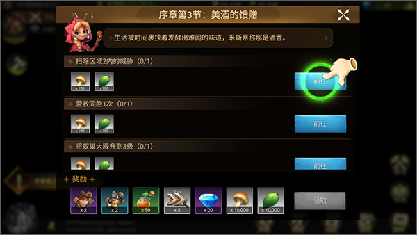 1. 玩家开启《蚁国兴盛之地》游戏,进入序章的第一节,按照游戏新手引导,点击蘑菇图标。