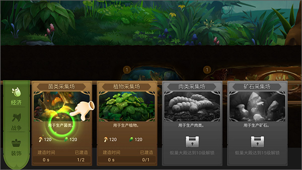 4、玩家选择菌类采集场后即可到蚂蚁洞里进行建造;