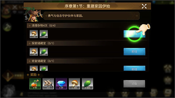 9、新手玩家熟悉游戏操作后,就能依据故事章节里的任务接着进行游戏。当章节通关,玩家还能获取丰厚奖励与新角色。