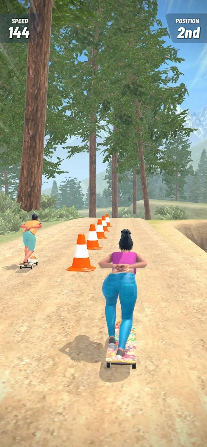 速度调控:在下坡时,需根据赛道的具体情况来调整速度。遇到平缓的斜坡可以适当保持较高的速度,利用坡度自然加速;然而,在陡峭的路段上,速度会迅速增加,这时需要注意控制速度,以防因速度过快而无法及时应对突发状况,例如来不及避开障碍物或在转弯时失去控制。