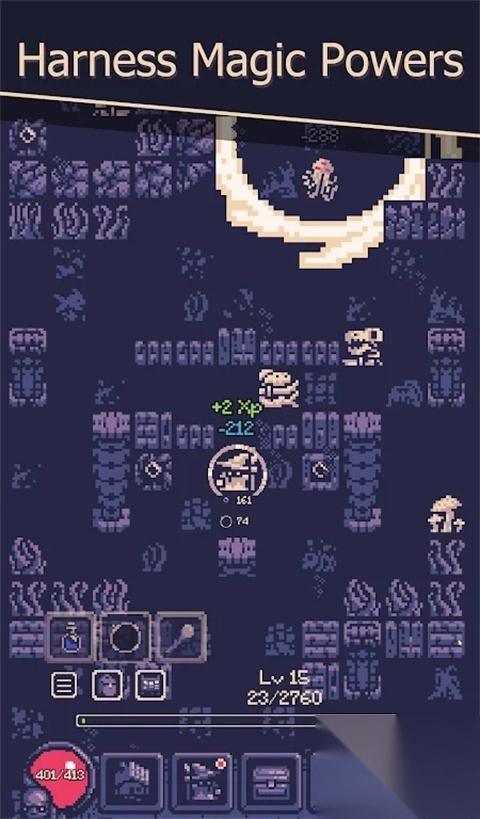 1、你可以从战士、血骑士、火法师、死灵法师等多种角色中进行选择。每个职业都拥有独特的技能树和属性设置,优势与劣势明显,风格各不相同,怎么玩完全取决于你的策略! 2、游戏的控制方式非常直观,只需使用右下角的方向键就能操控角色移动,碰撞到敌人时会自动发起攻击。无需复杂的操作,你便能在地牢世界中自由探险、寻找宝藏,偶尔还能遇到意想不到的惊喜战利品!
