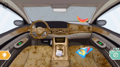 4、接着点击绿色按钮,把座椅升起来,拿起右边的清洁剂,将车内全面喷洒一遍,随后用左边的抹布擦拭干净。