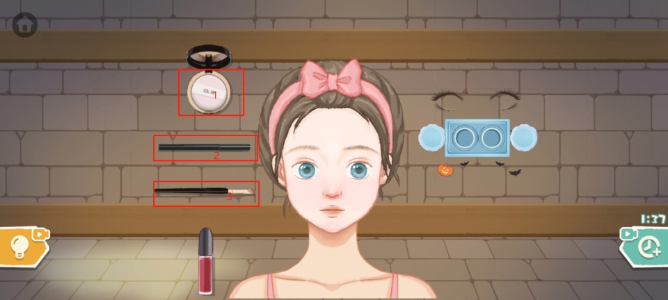 3、在【一起捣蛋】关卡中,需cos万圣小魔女。操作步骤如下:先打开美瞳盒子,然后依次戴上美瞳。