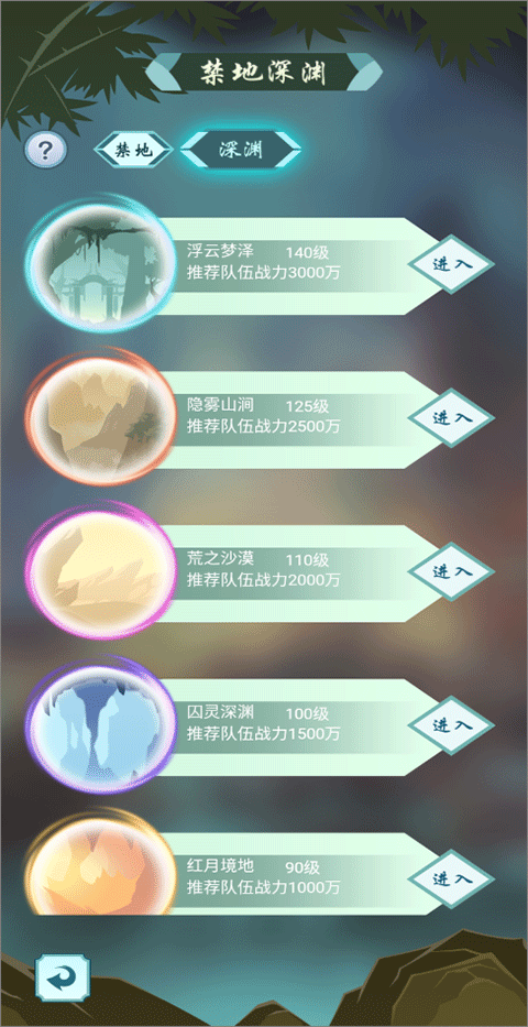 九霄秘境和禁地是限制挑战次数随等级开放的副本,深渊是每天每个副本只能领取一次奖励的跨服组队副本。