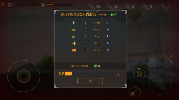 与此同时,游戏中包含大量各式各样的战斗机,玩家能够凭借通关闯关获取的金币进行购买解锁,随后可通过提升装甲、燃料、速度、火力等方面来对其加以改进,从而发挥出更为强大的实力。