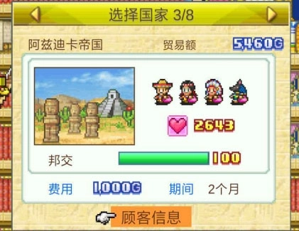 可以查看周边国家的情报和旅客。
