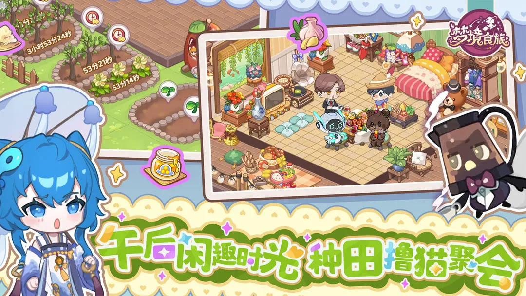 3、探索秘境和各种小伙伴共同冒险,一同经营餐厅。