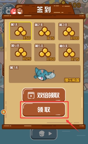 2. 轻点底部红框中的领取按钮,通过每日签到即可领取金币奖励。