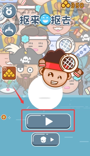 3、轻点红框中的播放按钮,开启游戏,操控猴子接住白色的球。