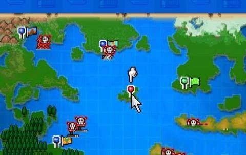 6.这就是海图,左上角那个章鱼等级比较高,等建了铁甲船再去。右下角的是2级大型帆船,难度中级,其他的都可以先打下来。点别人的港口,可以出3个选项,观光可以增加友好度,友好度用来升级事业等级输入就是进口的意思, 进口可以设置为自动,上面会显示这个港口的特产是什么,一般是食材,金属,油。右下角的壳却,就是卖出,你可以理解为出口。