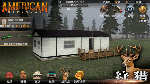 1、首先打开猎鹿人神枪手中文版后,进入游戏中点击右下角【狩猎】