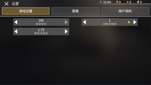 首先进入游戏内,点击右上角的设置,可以调整一下瞄准灵敏度和视角灵敏度,还有图像和用户资料亦可以顺便微调一下