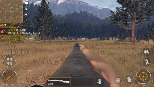 最后,当看到有动物出现时,要屏住呼吸,然后点击左下角的子弹,就能射击出去。