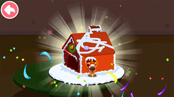 4、要点击什么呢?点击糖果盒,接着把糖球、拐杖糖以及小熊软糖都放置上去。哇哦,一座超级可爱的姜饼屋出现啦!
